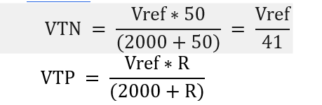 Substitute the values: R1 = R2 = 2000Ω; R3 = 50Ω; R4 = R;