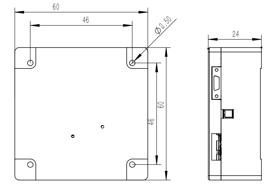 Circuit box dimensions (mm): 60±0.1×60±0.1×24.0±0.1 (length×width×height);