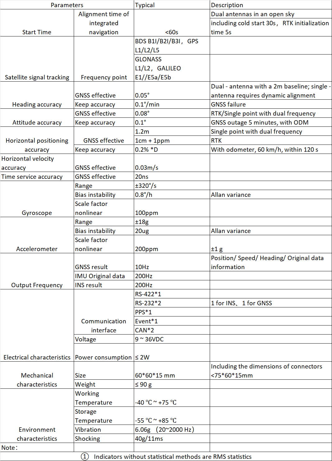 ⚪ The horizontal position accuracy can be within 0.2%×D with GNSS outage①