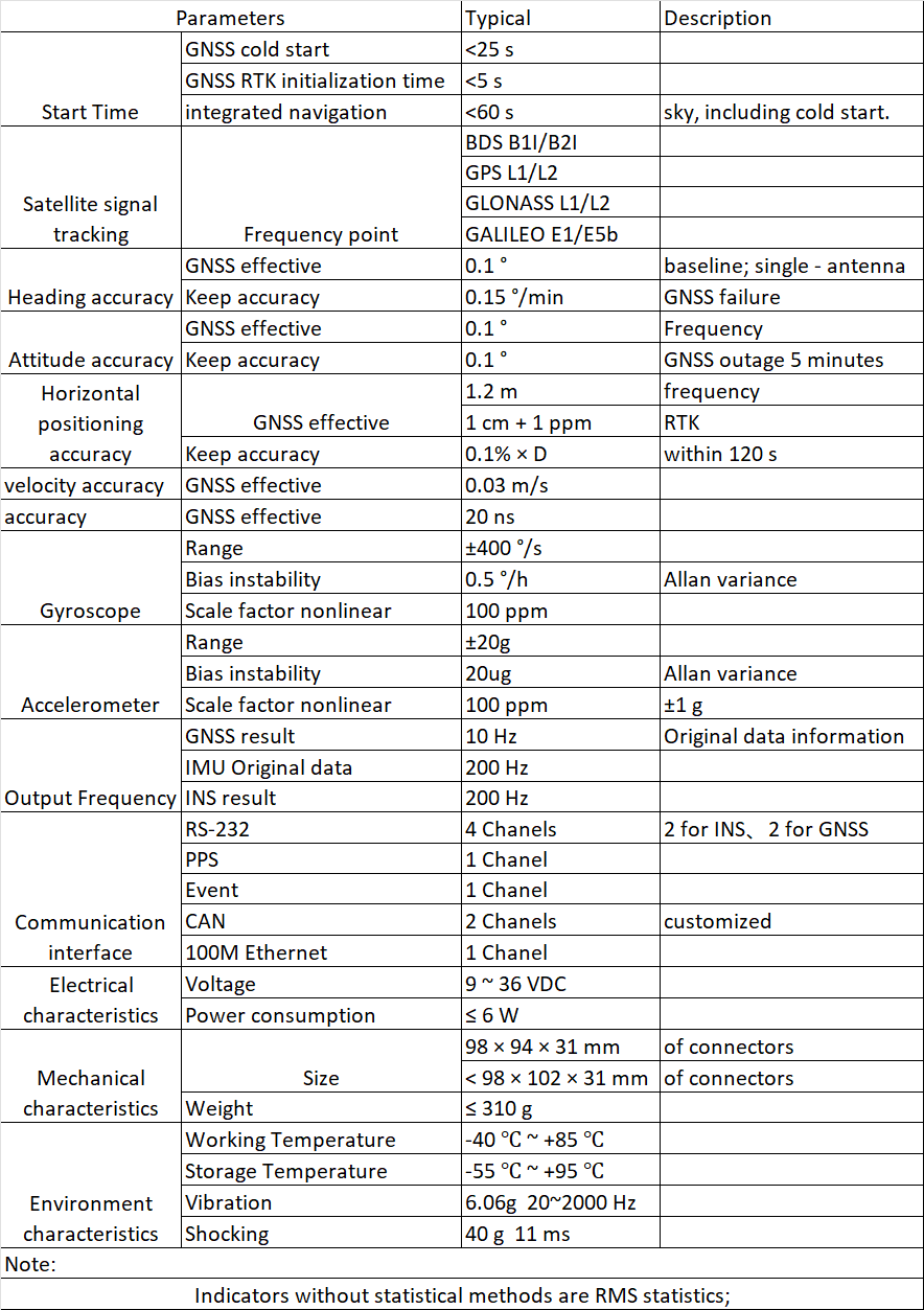 ⚪ The horizontal position accuracy can be within 0.2%×D with GNSS outage①